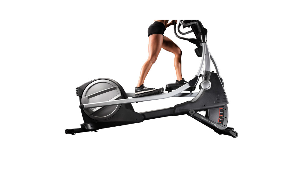 Домашний эллиптический тренажер с классическим заднеприводным расположением маховика весом 8 кг и длиной шага 46 см. 22 уровня бесшумного магнитного сопротивления с электронной регулировкой, 24 встроенные программы. Встроенный вентилятор AutoBreeze™ с ручной и автоматической регулировкой, чтобы провести тренировку в комфортных условиях. Изменение угла наклона до 10 градусов с помощью кнопки на консоли тренажера позволит лучше прокачать ваши квадрицепсы, игры и ягодицы. Сенсорные датчики пульса Dual EKG™ Grips расположены на рукоятках. Точность показаний частоты сердечных сокращений обеспечивается нагрудным датчиком Bluetooth Smart® (опция, приобретается отдельно). После тренировки вы можете хранить тренажер и экономить жизненное пространство благодаря удобному дизайну space saver и транспортировочным роликам. Он настолько компактен, что его можно хранить в шкафу или в любом уголке вашего дома. Совместимость с iFit® Coach Ready позволит путешествовать во время тренировки. Побывать в Париже, пробежаться в Швейцарских Альпах или по побережью в Чили возможно с помощью маршрутов Google Maps™. Вы можете настроить собственные тренировки с неограниченным количеством программ, разработанных сертфицированными тренерами. Библиотека тренировок постоянно дополняется. Тренажер поставляется в коробке в пред-собранном виде и его подготовка к тренировке занимает несколько минут. Дисплей размером 5" с звуковой системой и возможностью подключения iPod®. Большие педали с рифленным амортизирующим покрытием. Держатель для бутылки и планшета.